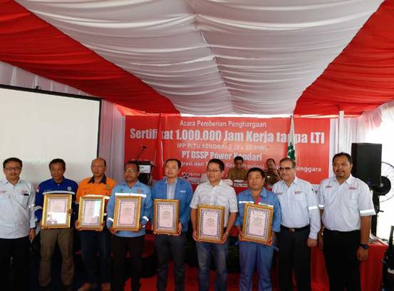 8月29日,印度尼西亞勞工部和肯達(dá)里-3燃煤電廠項目業(yè)主PT.DSSP Power Kendari邀請各施工單位代表,在現(xiàn)場舉行該工程項目100萬小時安全生產(chǎn)無事故里程碑慶祝活動。