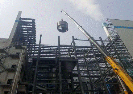 由機電事業部承建的鄭州滎錦綠色環保能源有限公司4#爐升級改造項目,經過項目部周密安排,于2018年05月13日吊裝兩臺旋風分離器、兩組頂板梁組合件、汽包順利就位。得到業主、監理的好評,為后續工程的順利開展奠定了良好的基礎。