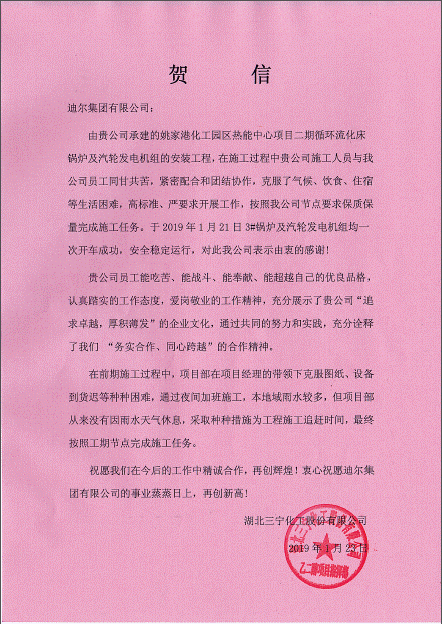 第一公司湖北三寧化工3#鍋爐及汽輪發電機組一次開車成功