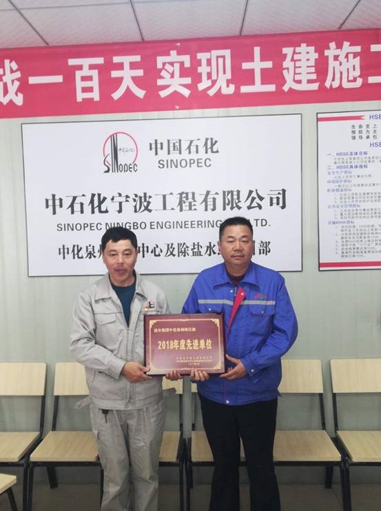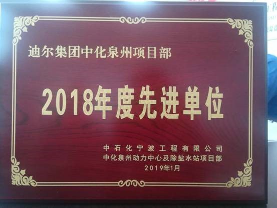 三公司中化泉州項目部在“2018年百日競賽活動中”被總包單位評為“年度先進單位”。