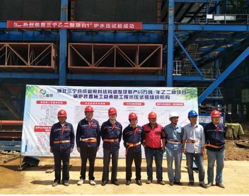 熱烈祝賀我公司承建的湖北三寧化工乙二醇鍋爐裝置1#鍋爐水壓試驗(yàn)圓滿成功