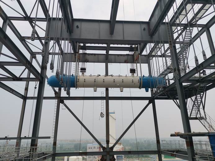 2019年8月22日6點58分,安徽昊源化工項目部4#鍋爐汽包開始吊裝,11點58分順利吊裝就位。