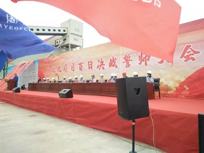 2020年5月18日上午8時58分,烏蘭泰安大化肥項目施工現場彩旗飄飄,建設單位組織開展“爭分奪秒搶工期、一絲不茍創精品”、“振奮精神、敢拼必勝、大戰100天大會戰”誓師宣誓活動。建設單位、監理單位、總包單位、各施工單位現場負責人出席并做出發言,各參建方300余人參加了本次誓師大會。2020年對于我公司承接的熱電裝置、空分裝置都是至關重要的一年,也是即將收獲的一年,項目經理黃省參會并表示,迪爾集團有限公司烏蘭泰安項目部將秉承“厚積薄發,追求卓越”的企業精神,遵循“尊道貴德 誠信 合力”的經營哲學理念,嚴格執行“真誠服務,超越顧客期望”的市場戰略理念,真抓實干、不畏艱難,精心組織、統籌安排,發揮團隊最強戰斗力,樹立迪爾良好的企業形象,確保順利實現工程節點目標。
