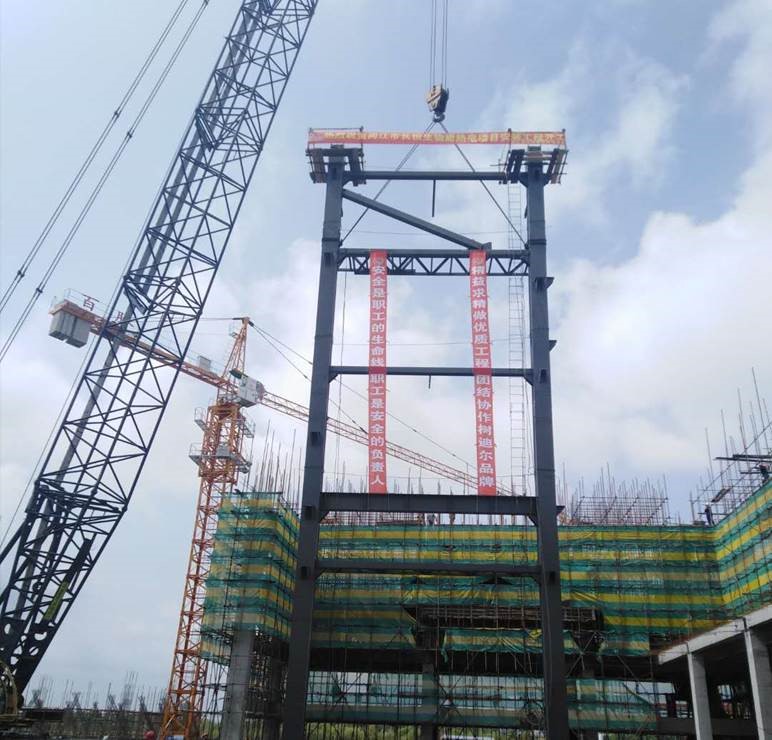 由迪爾集團有限公司第二分公司承建的同江市長恒生物質熱電聯產項目安裝工程于2020年8月2日上午9:59第一片鍋爐鋼架順利吊裝就位。