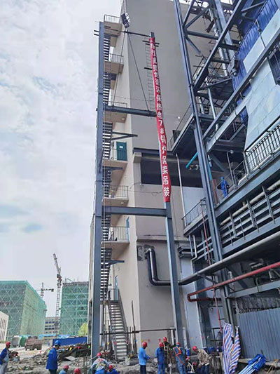 2021年7月13日9時18分,由第二公司承建的浙江龍德環保熱電項目7#鍋爐鋼架順利吊裝。
