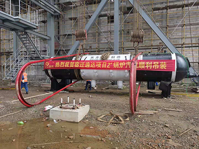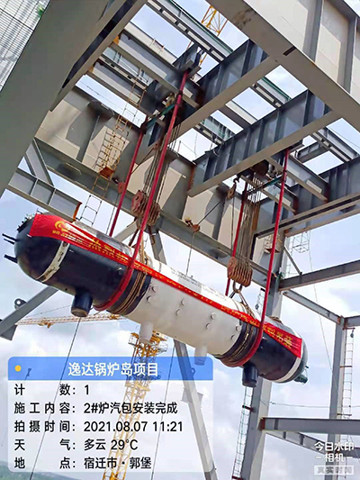 由第二分公司承建的宿遷逸達新材料有限公司200萬噸(聚酯)/年鍋爐及配套工程鍋爐島設備安裝工程(I標段)2#鍋爐汽包,于2021年8月7日11時成功吊裝就位。