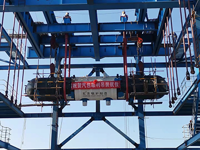 陽春新鋼鐵余熱資源綜合利用發電項目汽包順利吊裝就位