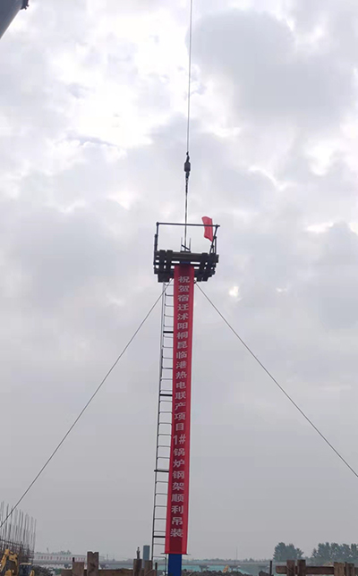 2021年9月9日上午7時58分,由迪爾集團有限公司南昌辦事處承建的宿遷沭陽-桐昆臨港供熱片區熱電聯產項目一期一階段-安裝標段(2×270t/h+1×120t/h高溫超高壓循環流化床鍋爐+1x6MW汽輪拖動空壓機組)1#鍋爐第一根鋼架吊裝就位,標志著本工程正式開工。
