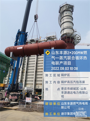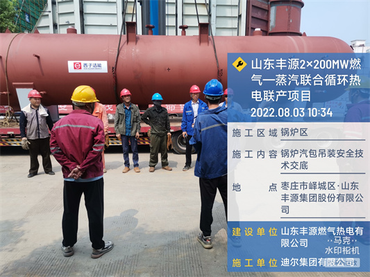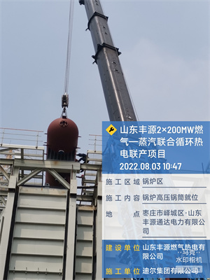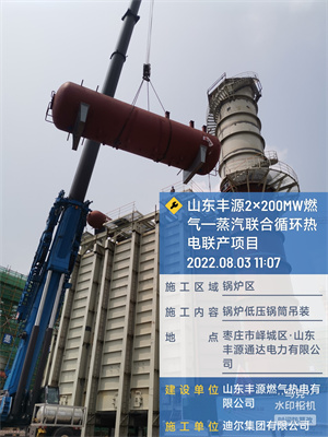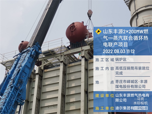 迪爾集團有限公司第二公司承建的山東豐源燃氣熱電聯產項目,1#余熱鍋爐高低壓鍋筒吊裝完成,高低壓鍋筒吊裝標志著鍋爐連接管路的施工開始,也為下一步鍋爐水壓實驗奠定了堅實的基礎。