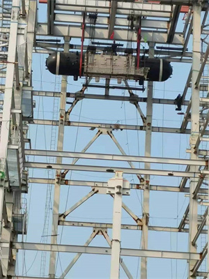針對此次吊裝作業(yè),項目部高度重視,組織制定整體施工計劃,協(xié)調(diào)各單位制定有效的工作方案和措施,責任落實到位,嚴格按照規(guī)范和標準執(zhí)行施工作業(yè),克服困難,創(chuàng)新思路,確保吊裝順利完成。本次吊裝作業(yè)起吊重量約86噸,上午9時36分,設備準備就緒,操作人員就位,各項檢查完畢,吊裝正式開始,16時18分,汽包到達既定高度,吊桿穿裝完畢,吊裝作業(yè)順利完成。