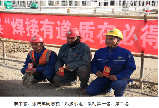 活動共分4個小組進行,分別為競答小組、樣板小組、砌筑小組、焊接小組。我單位積極響應業主質量月號召,分別參加了競答小組、焊接小組競賽活動。活動結束后,項目部參加人員取得了驕人的成績:于乘淼、魏自強同志參加的競答小組喜獲第一名,李榮富、張慶年同志分別獲得焊接小組比賽的第一名、第二名,為公司爭光添彩,彰顯了公司在安裝技術方面的實力。