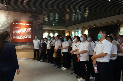 在《永遠跟黨走》展室前,全體學員共同合唱誕生在沂南的經典歌曲——《跟著共產黨走》,感受和學習沂蒙人民堅定跟共產黨走的理想信念。軍民“水乳交融、生死與共”,鏗鏘有力的旋律激勵著迪爾學員們自覺弘揚和傳承沂蒙革命精神和紅嫂精神,充分發揮干事創業的主觀能動性,永葆昂揚斗志,不忘初心使命,以更加奮發有為的精神狀態推進公司高質量發展。