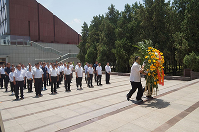 接下來,大家來到孟良崮烈士陵園瞻仰參觀。烈士陵園位于孟良崮前泉橋村北,占地6.25萬平方米,陵園中央是“孟良崮戰役革命烈士紀念館”,館后是革命烈士墓群。周圍磚石花墻,滿園翠柏籠罩,雄偉壯觀,浩氣凜然,令人肅然起敬。學員們列隊在粟裕將軍墓前敬獻花籃,深情悼念革命先烈,并重溫入黨誓詞。在當地解說工作人員的引導下,大家進入孟良崮戰役革命烈士紀念館內參觀學習。紀念館通過大量的文字、圖片、實物的陳展,詳細地介紹了烈士的英雄事跡和孟良崮戰役的過程、戰績,使學員們深受震撼。