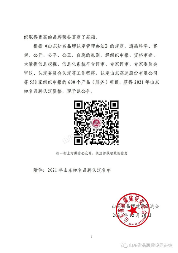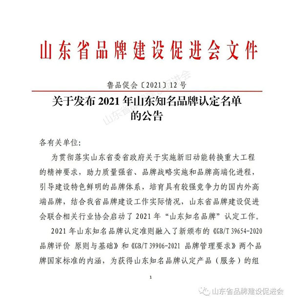 山東知名品牌的認(rèn)定是貫徹落實(shí)山東省委省政府關(guān)于實(shí)施新舊動(dòng)能轉(zhuǎn)換重大工程精神要求,助力質(zhì)量強(qiáng)省、品牌戰(zhàn)略實(shí)施和品牌高端化進(jìn)程,打造具有山東特色品牌體系,培育具有競(jìng)爭(zhēng)力的高端知名品牌的具體實(shí)踐。作為山東品牌的一面金字招牌,其認(rèn)定標(biāo)準(zhǔn)融入了國(guó)家標(biāo)準(zhǔn)中品牌評(píng)價(jià)五要素,與國(guó)家品牌評(píng)價(jià)工作思路實(shí)現(xiàn)對(duì)接,為公司取得更高的品牌榮譽(yù)奠定了良好的基礎(chǔ)。