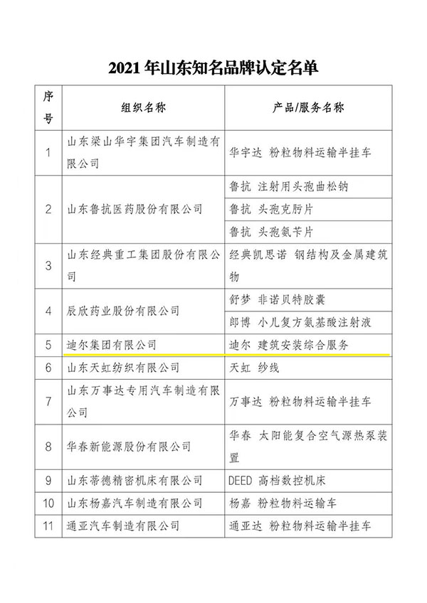 迪爾集團(tuán)獲評(píng)山東知名品牌