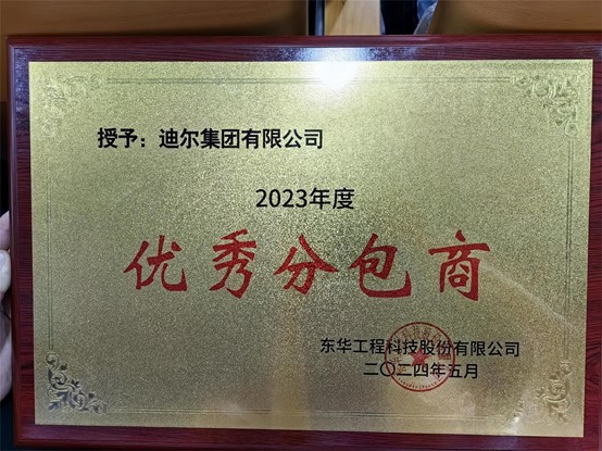 近日,在中冶賽迪和東華科技兩家單位分別組織的年度優秀供應商表彰大會上,迪爾集團有限公司獲得中冶賽迪2023年度“優秀合作伙伴”和東華科技2023年度“優秀分包商”榮譽稱號。